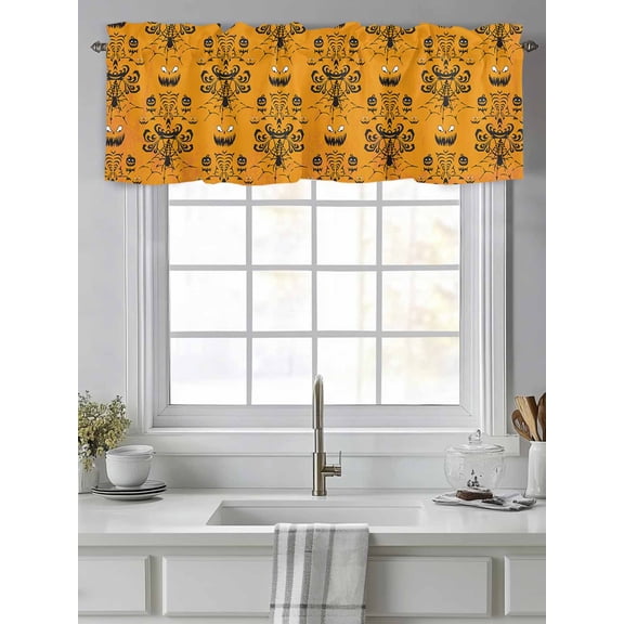 current price $17.99Curtain Valance for Windows,Halloween Pumpkin Spiders- Web on Orange Kitchen Valances Rod Pocket Short Curtains,Damask Flower Black Shadow Window Treatment Panel for Bedroom Bathroom 42"x18"