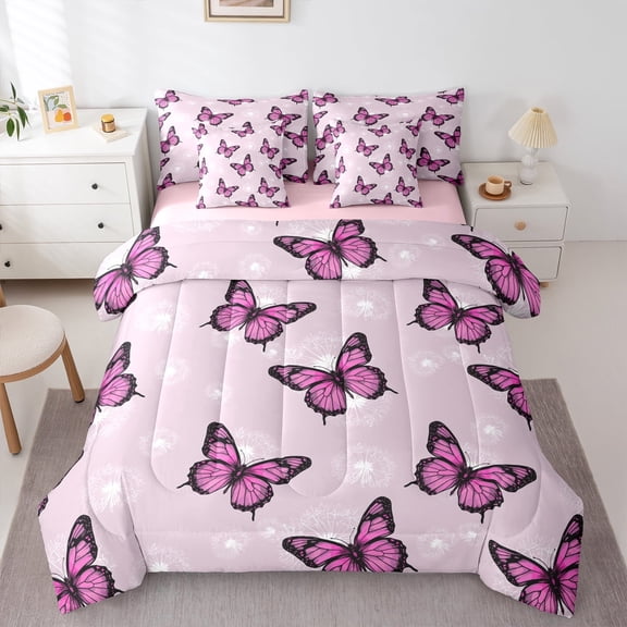 jejeloiu Cute Butterflies Full Size Comforter Sets,Rustic Dandelion Bedding Comforter Set,Gold Black Bedding Sets For Princess,Super Cozy Room Decor Reversible,3pcs From $43.69