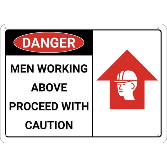 current price $8.89Danger Men Working Above Proceed With Caution Sign 12X8 Inch Tin Sign Great For Garden And Yard Wall Decor