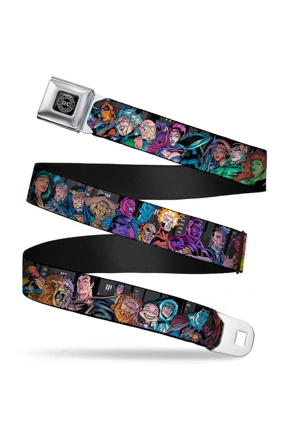 DC Comics Belt, Seatbelt Buckle Belt, Justice League Superhero Textured Logo Close Up Blocks, Youth 20 to 36 InchesDC Comics Belt, Seatbelt Buckle Belt, Superheroines Wonder Woman Supergirl Batgirl, 34 to 52 Inches