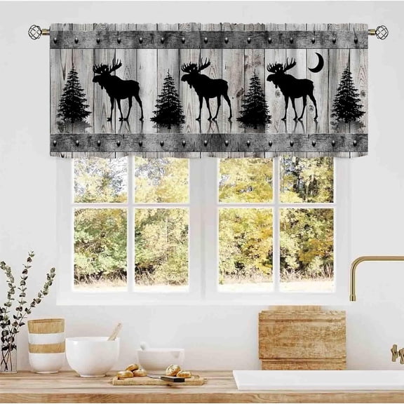 Alishomtll Kitchen Curtains Farmhouse Rustic Country Valance Curtains Bear Moose Deer Window Valance 18 Inches,Rod Pocket From $17.99