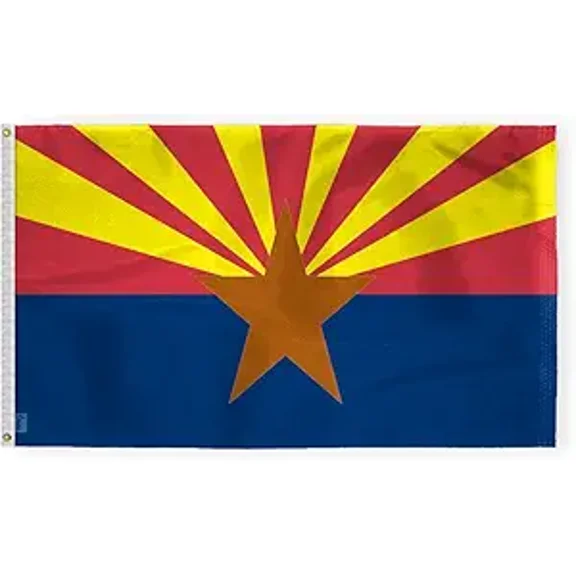 AGAS Arizona State Flag 4x6 Ft - Single Ply Reverse Print on Back 200D Nylon 100% Bleed Through - Brass Grommets Stitched Edges Fade Proof Sharp Vivid Colors From $14.97