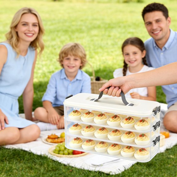 2-Tiers Egg Container, Deviled Egg Carrier, Eggs Holder with Handle Fridge Freezer Storage, Ortable Large Capacity Egg Storage Container, Shatter-proof Non-slip Eggs Holder with Handle, 1 Pcs From $14.24
