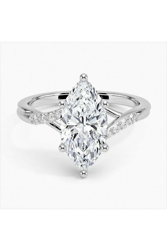 marquise cut moissanite Engagement Ring, vintage Rose gold ring, Women moissanite ring, stacking diamond ring, anniversary gift for her2 Ct VVS1/D Marquise Cut Lab Created Simulated Diamond Ring - Silver 14K White Gold Over Rings for Her - Twisted Split Shank Diamond Rings for Women's - Halo Diamond Rings for Women's