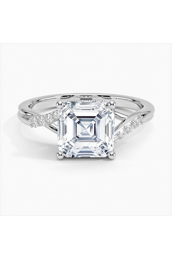 Silver 14K White Gold Over Rings for Her - 1.9 Ct VVS1/D Asscher Cut Lab Created Simulated Diamond Ring - Twisted Split Shank Diamond Rings for Women's - Halo Diamond Rings for Women'sPre-Owned Tiffany & Co. Diamond Design Ring, Platinum, Pt950, Women's $914.00