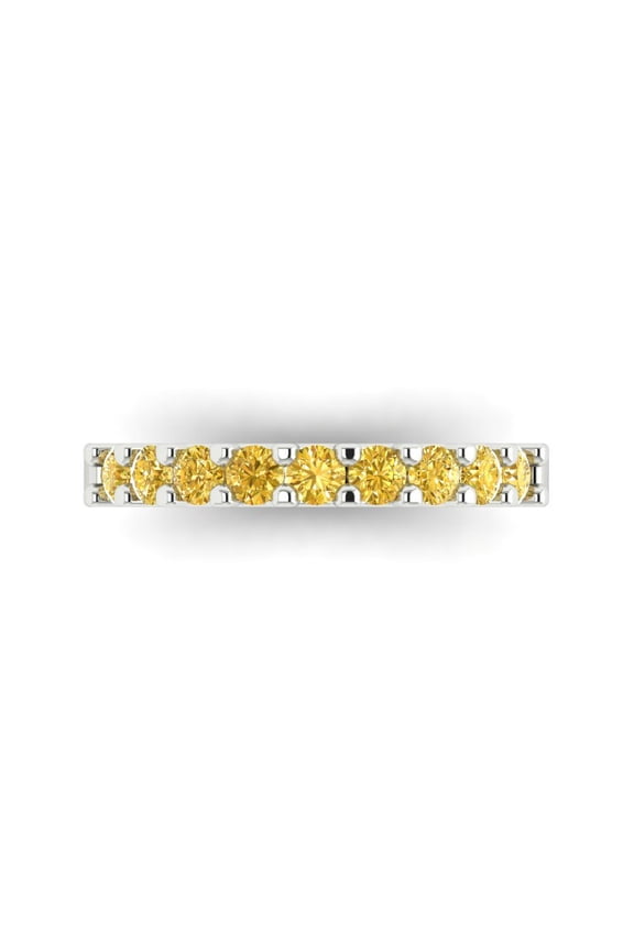 1 ctw Wedding Band for Women - 14K White Gold Simulated Yellow Diamond Stackable Eternity Ring1 Ct Round Cut Brilliant Stacking Diamond Ring – 14K White Gold Plated Anniversary Jewelry on Sale – Stackable Daily Wear Ring – Fine Jewelry Gift for Women From $82.60