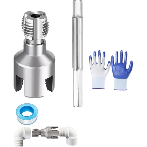 Integrated Internal & External Pipe Threading Tool, 1/2'' 3/4'' 1'' Dies, 2025 New Dual-Function Pipe Thread Cutting Tool, Electric Drill Compatible Pvc Pipe Threader Kit for Home Repair $6.88 Was $12.00