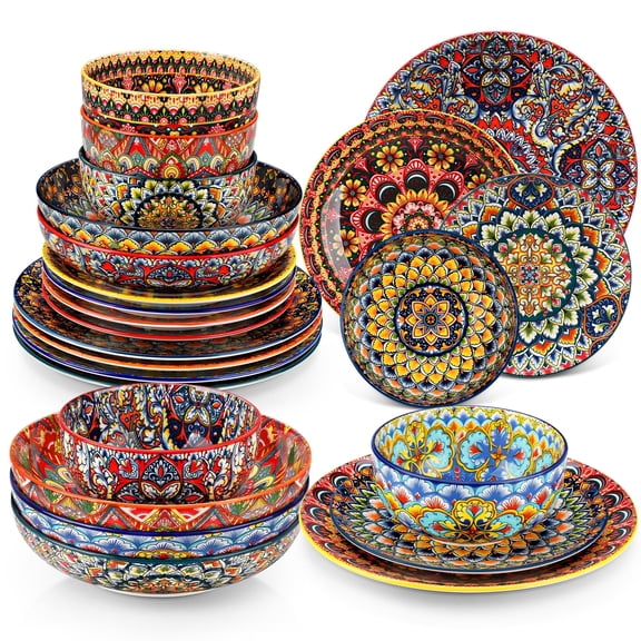 vancasso Dinnerware Set, Porcelain Plates and Bowls Set for 6, 24 Pieces Ceramic Boho Tableware Set for Kitchen, Bohemian Style Dish Set, Dishwasher and Microwave Safe From $52.99