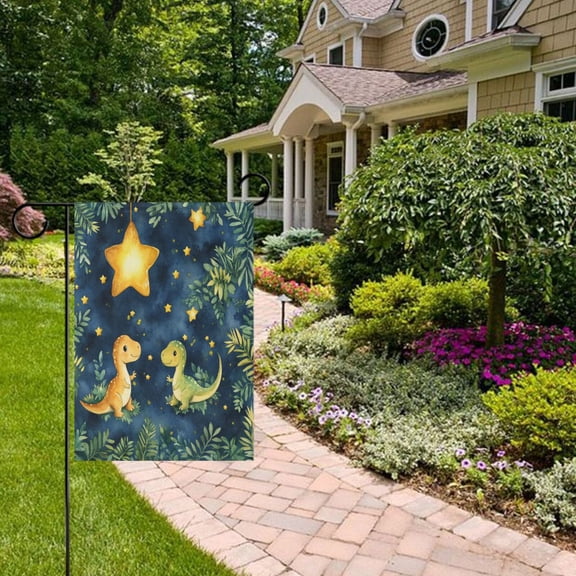 current price $15.99Dinosaur Stars Leaves Garden Flag Double Sided 12 x 18 Inch Outside Yard Decoration Outdoor Flag