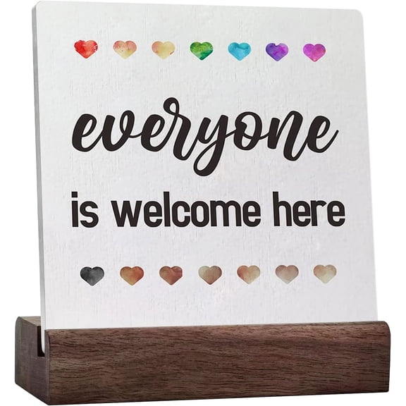 current price $7.99Zomyto 5x5 IN Inspirational Diversity Quote Everyone is Welcome Here Wooden Box Sign Desk Decor for Classroom School Shelf Table Decoration
