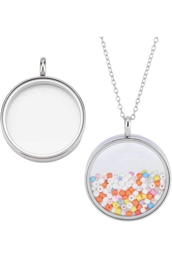 Stainless Steel Memory Locket Charm Flat Round DIY Picture Photo Necklace Making Kit Chain Necklace with Double Sided Frame Glass Container Floating Charms for Lockets for DIY1 Box 12Pcs 6 Style Stainless Steel Photo Frame Charm Diffuser Locket Pendants Silver Heart Locket Photo Frame pendants for Jewelry Making Charms Bracelet Necklace Earring DIY Craft Supplies Was $14.02