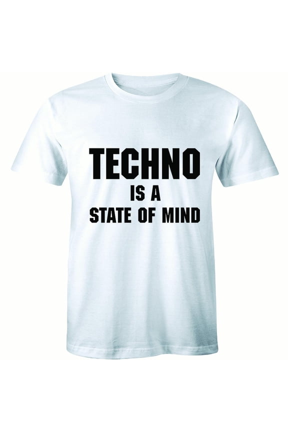 Techno Is A State Of Mind Sound Wave Funny Dj Music Lover Slogan Tee ShirtLED Light-Up T-Shirt with Music Graphic - Glow-in-the-Dark DJ Tee, Headphones & Equalizer Design, Let the Music Play Slogan - Oversized Fit for Club Nights, Concerts, Casual