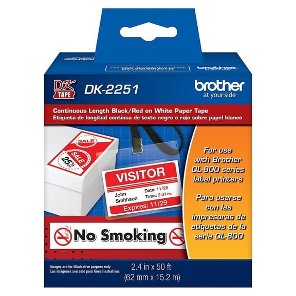 Brother Genuine DK-2251 Continuous Length White Paper Labels Two Color (Black/Red) for Brother QL Label Printers, 2.4 in x 50 ft (62 mm x 15.2 m), DK2251 From $31.49