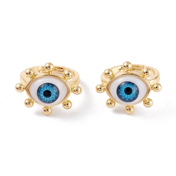 current price $12.56Adjustable Brass Enamel Finger Rings Long-Lasting Plated Real 18K golden Plated Evil Eye Dodger Blue 2mm Inner Diameter: 18mm