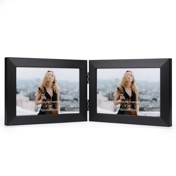 current price $10.494x6 Double Picture Frame, Black Hinged Folding Frame for Tabletop Standing