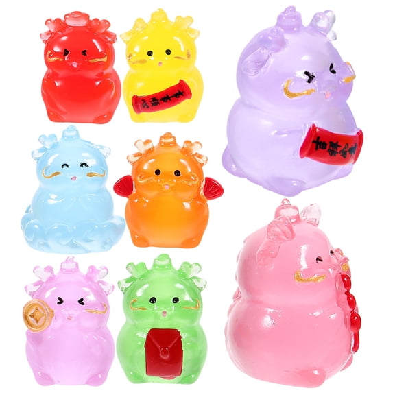 AURARMLET 8Pcs Resin New Year Figurines Assorted Color Lucky Desktop Mascot Decorations for Home
