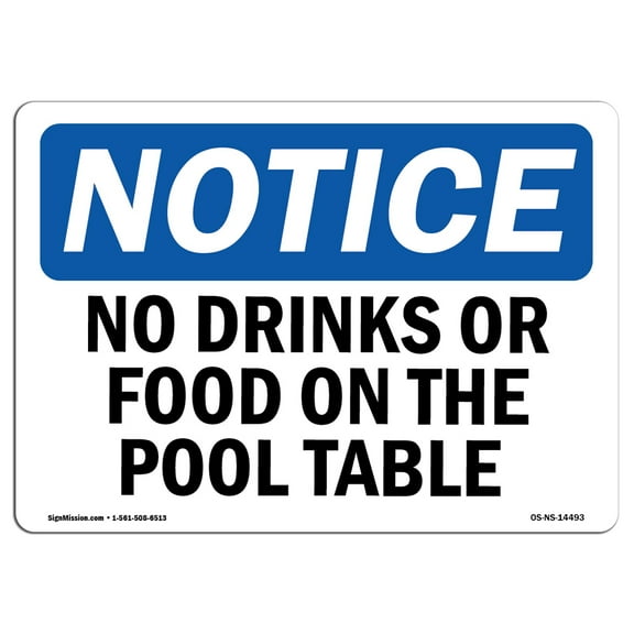 SignMission OS-NS-P-1014-L-14493 OSHA Notice Sign - No Drinks or Food on Pool Table From $10.99