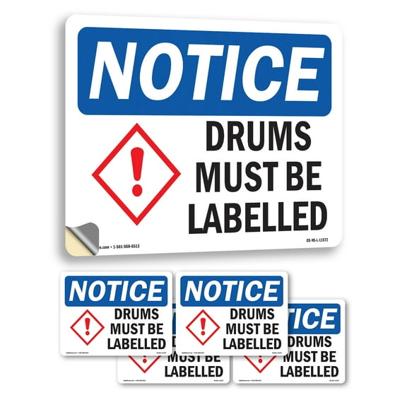 Drums Must Be Labeled OSHA Notice Vinyl Decal Label 10 Inch x 7 Inch - 5 Pack From $26.99