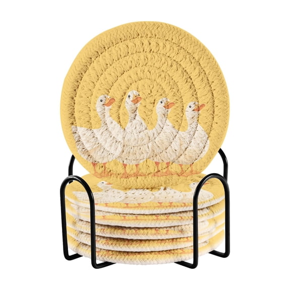 current price $15.99Cute White Ducks Drinking Coasters Cup Mat with Holder for Kitchen Cafe Bar 6 Packs