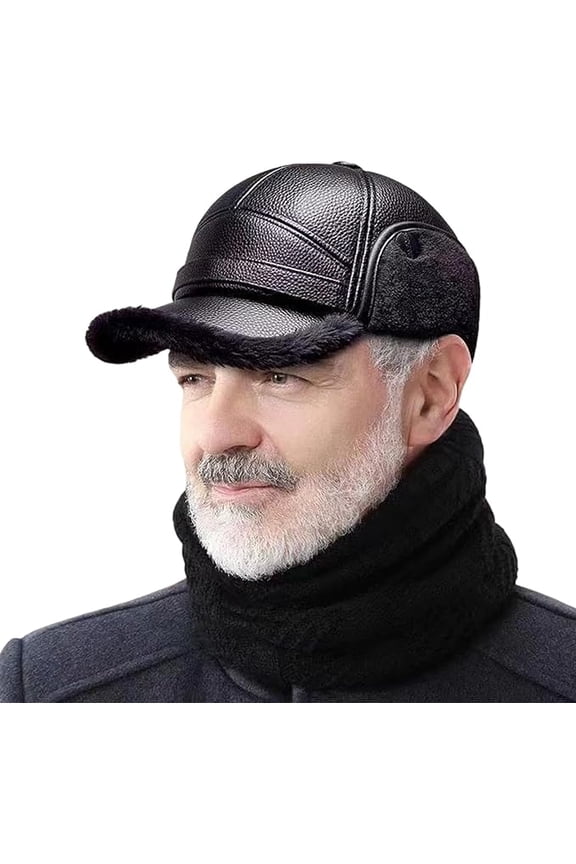 Men's Genuine Leather Winter Hat, Warm Faux Fur Lined Baseball Cap with Foldable Earflaps, Windproof Hunting Trapper Dad Hat for Cold Weather (K)Clearance Hats for Women Winter Earflap Knitted Cap Men Warm for Hat Knit Baseball Caps Hats Was $9.69