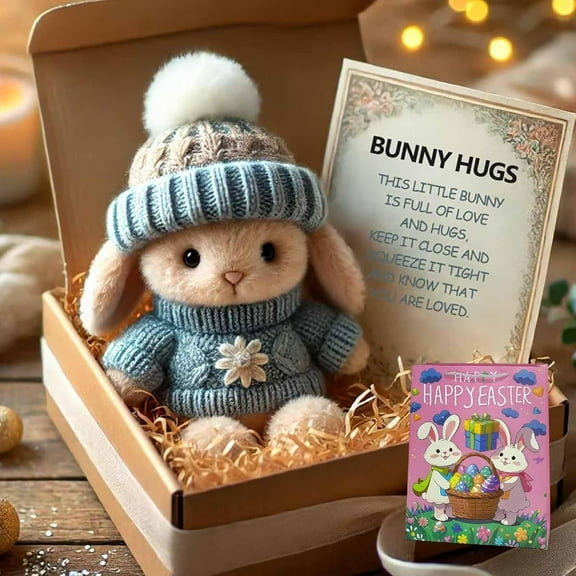 Clearance Handmade Mini Bunny Hug Cute Easter Gift with Card, 2026 New Soft Plush Rabbit Mini Bunny Hugs in Box, Easter Basket Bunny Stuffer Women Men for Mother's Day, Valentine's Day, Birthday From $9.99