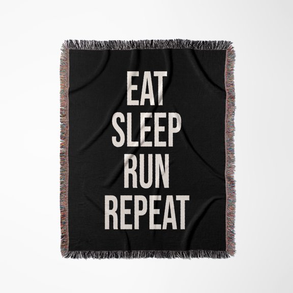 Eat Sleep Run Repeat. White Lettering On Black Background., Woven Blanket $61.97