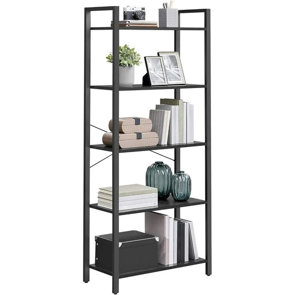 5-Tier Bookshelf, Bookcase with Steel Frame, Book Shelf for Living Room, Home Office, Study, 11.8 x 26 x 60.2 Inches, Industrial Style, Ebony Black and Ink Black ULLS061B56