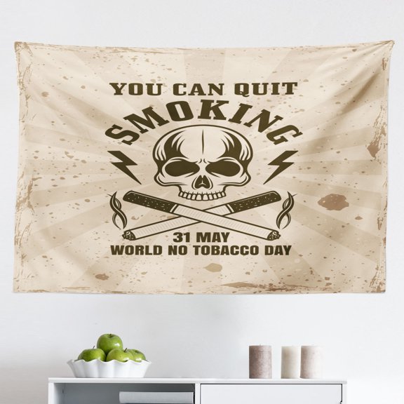 Skull Smoking Tapestry, Highly Detailed Human Skeleton Head Shape Image and Mouth Print, Fabric Wall Hanging Decor for Bedroom Living Room Dorm, 2 Sizes, White and Pale Eggshell, by Ambesonne