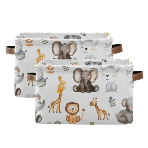 Ryvnso Cute Elephant Zoo Storage Basket Large Bin Foldable Boxes Toys Organizer 14.2x10.2x8.3in 2 PCs From $15.99