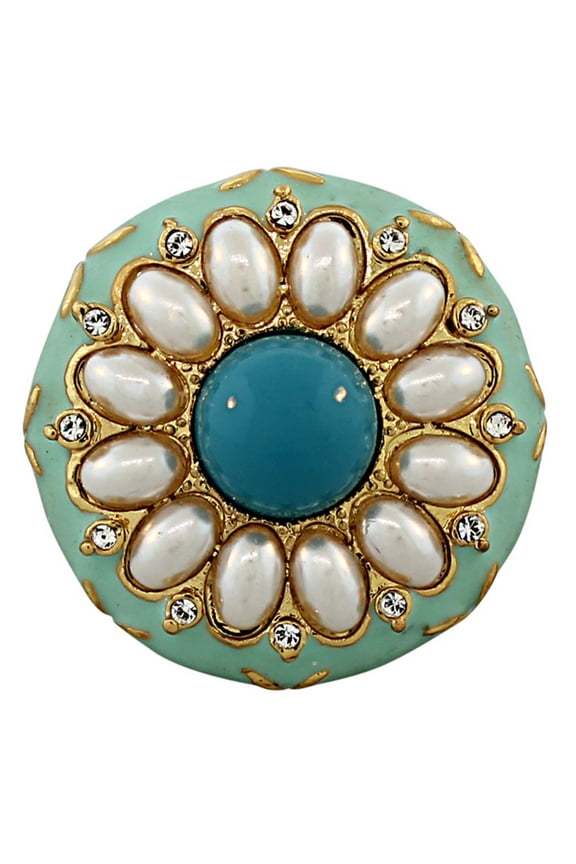 Fashion Alloy Yellow Gold-Tone Simulated Pearl Turquoise-Tone Enamel Cocktail RingLapis and Dark Blue Enamel Ring in 18kt Gold Over Sterling, Women's, Adult