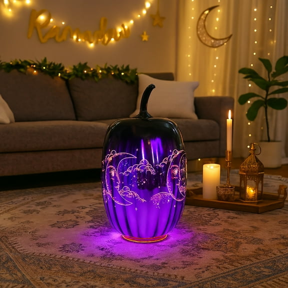 2 PCS Ramadan Purple Glass Pumpkin Ornament Set with Enchanted Moon, Star & Sun - Moon Patterns and Built With Fairy Lights,Luminous patterns $35.95