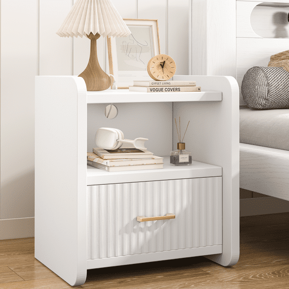 Frmobepts Fluted Nightstand with Charging Station, 22" Modern Side Table with Drawer End Table with Open Storage, Bedside Table for Bedroom, Living Room, Natural Oak From $74.59
