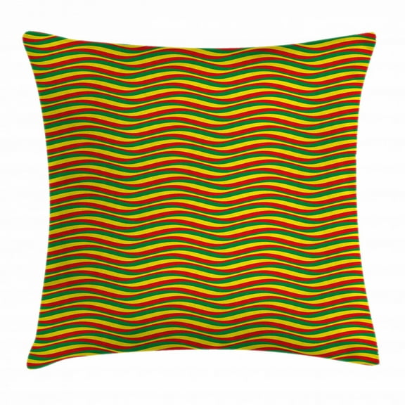 Rasta Throw Pillow Cushion Cover, Vivid Colors Ethiopian African Flag Colors in Wavy Style Stripes Image, Decorative Square Accent Pillow Case, 18 X 18 Inches, Marigold Green and Red, by Ambesonne $13.99