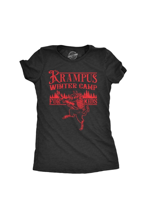 Womens Krampus Winter Camp for Kids T Shirt Funny Xmas Evil Santa Claus Monster Joke Tee for Ladies Womens Graphic Tees From $14.99