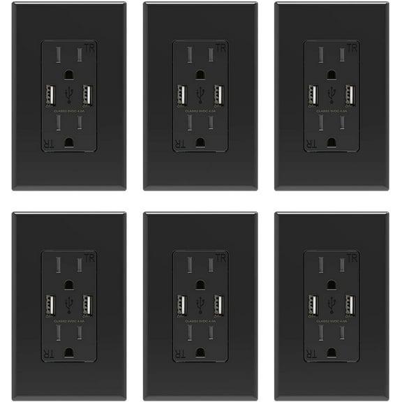 ELEGRP USB Wall Outlet Receptacle with Dual 4.0 A USB Ports, 15 Amp Duplex Tamper Resistant Receptacle, Charging Power Outlet with USB Ports, Screwless Wall Plate Included, UL Listed,6PC, Black From $17.24