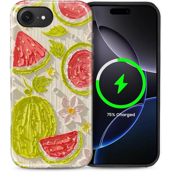 Magnetic Phone Case for iPhone 16e, Compatible with MagSafe, Durable 2 Layers Full Covered Shockproof Protective Cover-Artful Aesthetic Watermelon Fruit