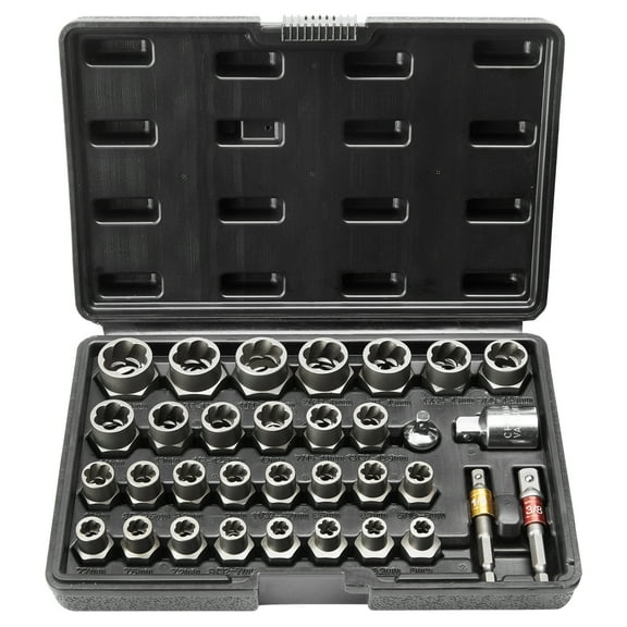 current price $37.90KFFKFF Screw and Bolt Extractor Set, 29-Pc for Stripped Bolts & Nuts, Sizes 6-19mm & 13/32'-3/4', CR-MO Steel Sockets with Case, Ideal for Corroded or Seized Fasteners
