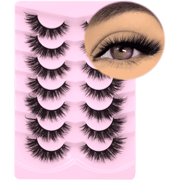 Reduced price Fluffy Faux Mink False Eyelashes 7Pairs Full Volume Strip Lashes Winged Cat Eye $7.65 Was $13.99