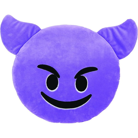 emoji large pillow, smiling face with horns $29.99