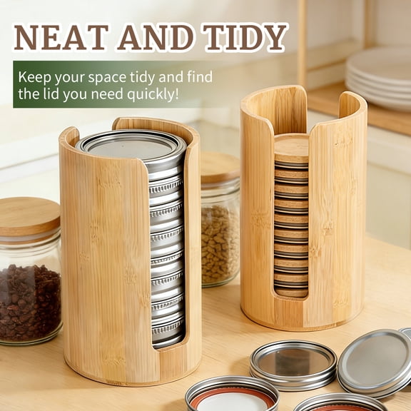 current price $22.592 Pack Mason Jar Lid Organizer, Bamboo Vertical Lid Holder for Wide & Regular Mouth Canning Lids, Stackable Countertop & Cabinet Storage Rack for Mason, Tumbler & Bamboo Lids