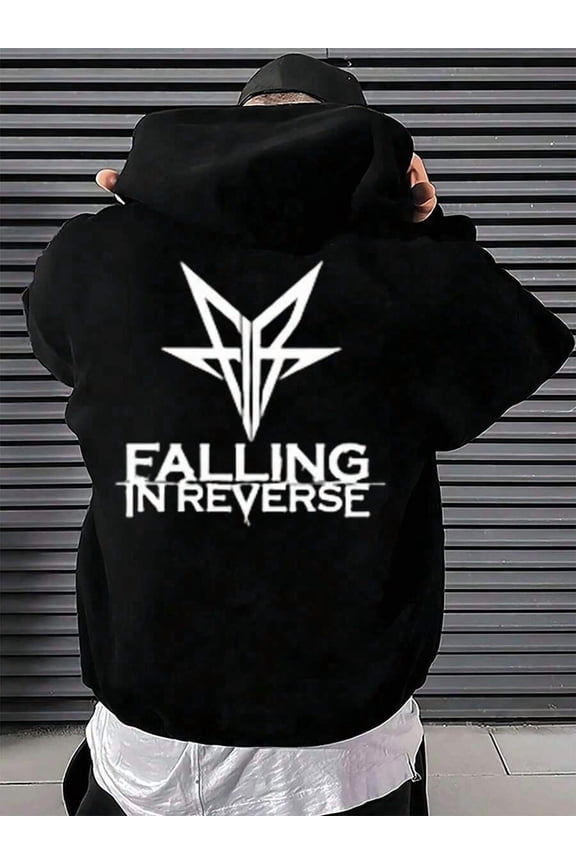 Falling In Reverse T-Shirt, Popular Monster, Unisex Rock Tee - Gift for Rock Lovers,Black color,size XLFalling In Reverse Black Tee ,Hoodie,Men's Double-Sided Printed Casual And Comfortable Hoodie, Casual And Versatile Coat In Autumn And Winter(1 PC)-Men's 50% Cotton 50% Polyester Hooded Sweatshirt -