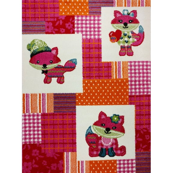 KC CUBS Boy and Girl Bedroom Modern Decor Area Rug and Carpet Collection For Kids and Children (5' 3" x 7' 3", Pink Fancy Fox)