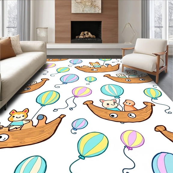 ODIKA 6x9 Machine Washable Non-Slip Area Rug, Enchanted Aerial Wildlife Expedition Drifting Fantasy Carnival High Traffic Rug, Brown, 682625 From $69.99