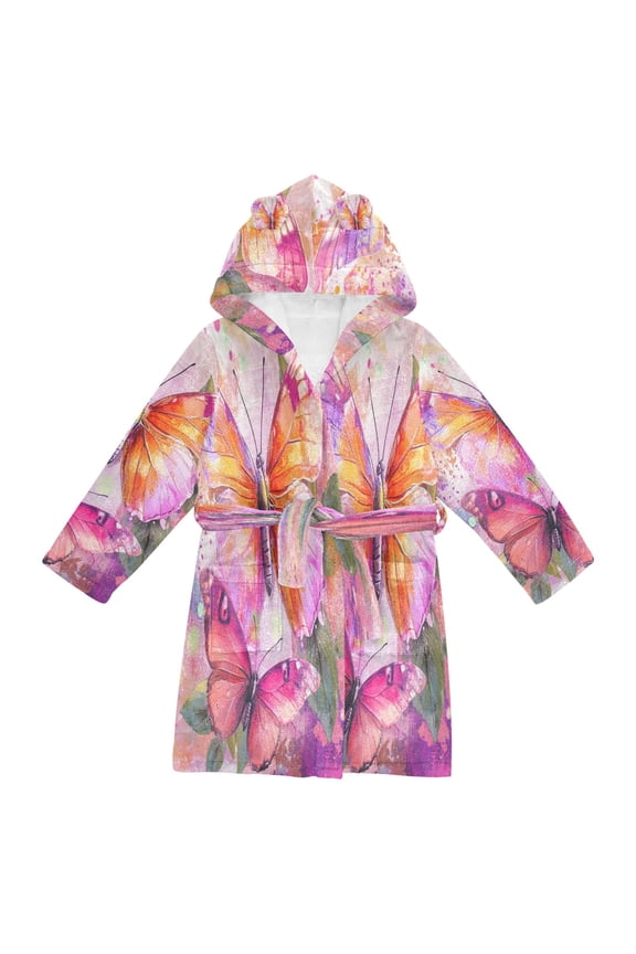 Sleepwear Robe For Boys And Girls Dreamy Themed Pajama Party Costume Nighttime AdventureBathrobes Belt Hooded Whimsical Butterfly Fantasy Creative Pattern