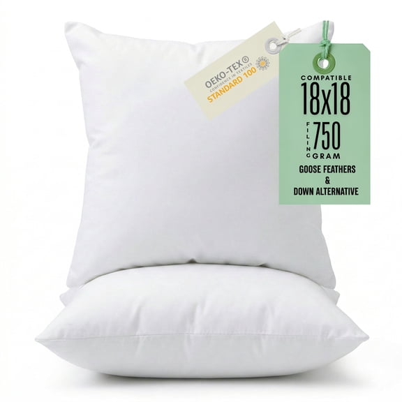 Dafinner Organic Cotton Goose Feather Down Throw Pillow Inserts, 18x18 Inch, Set of 2, Soft & Supportive, Square Decorative Pillow Forms Core for Living Room Couch, Sofa, or Bed From $23.90
