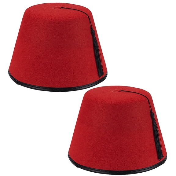 2 Pack Red Turkish Fez Hat Felt Polyester Material with Black Tassel Traditional Moroccan Hat for Themed Parties Costumes and Cultural Events DIY $11.22