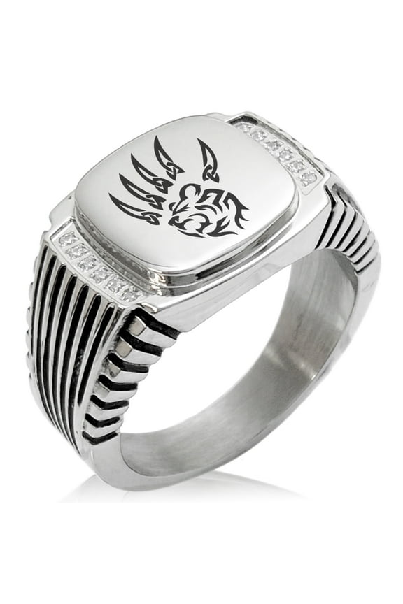 Stainless Steel Ferocious Bear Claw CZ Ribbed Needle Stripe Pattern Biker Style Polished RingBulk lots 30pcs Top Mix Ferocious Animal Biker Ring Men's Punk Rocker Alloy Ring $33.99