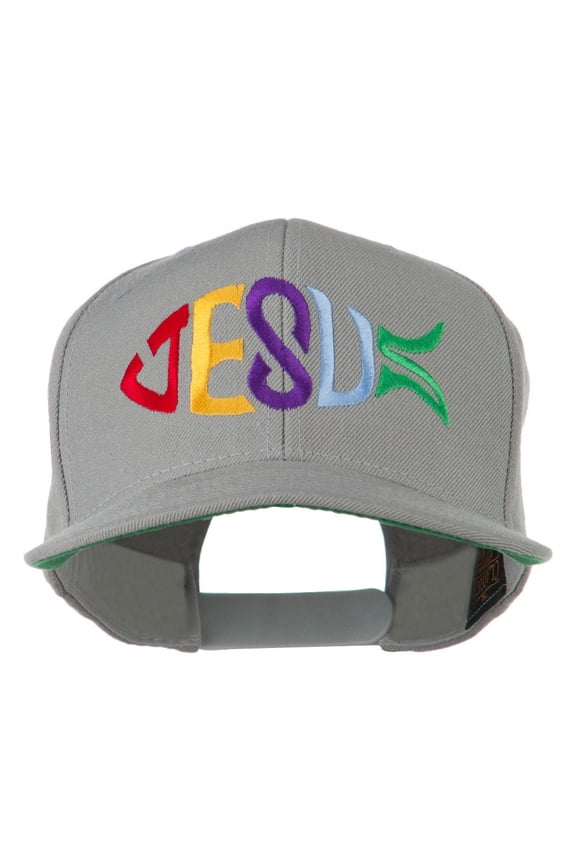 Jesus Fish Embroidered Flat Bill Cap - Silver OSFM From $29.49