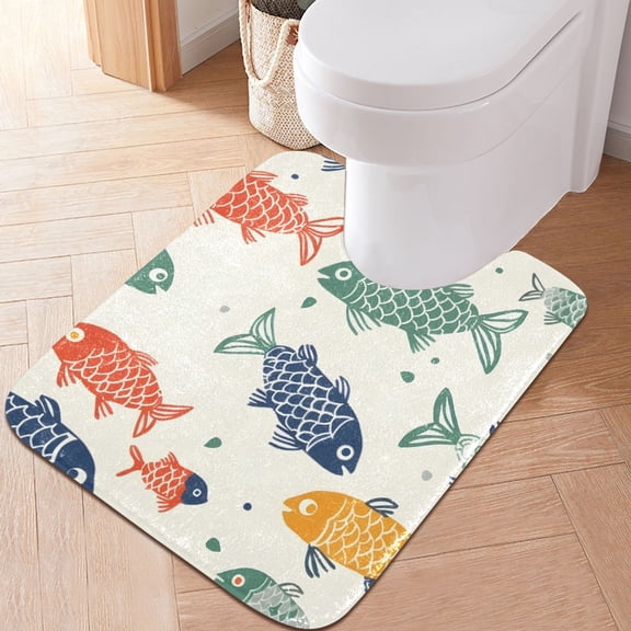 Toilet Rug U-Shaped Bathroom Rugs Non-Slip Soft Plush Machine Washable Contour Bath Mat Beautiful Multicolored Fish 24x20 From $17.99