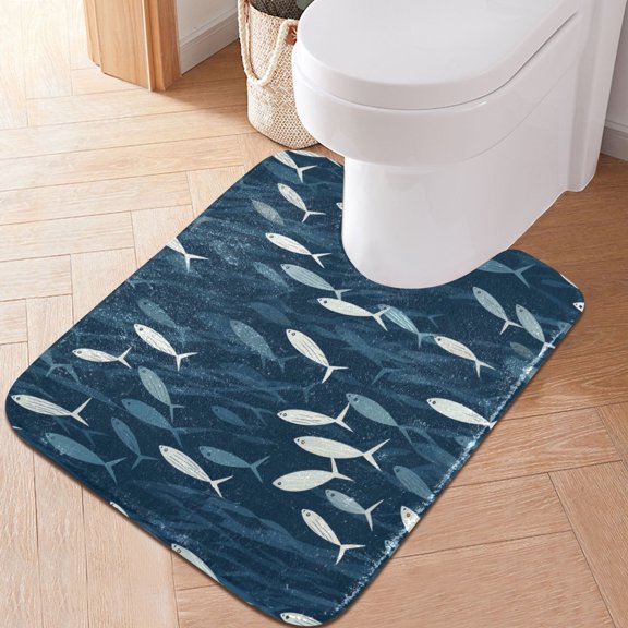 Toilet Rug U-Shaped Bathroom Rugs Non-Slip Soft Plush Machine Washable Contour Bath Mat Small Fish Swimming 24x20 From $17.99
